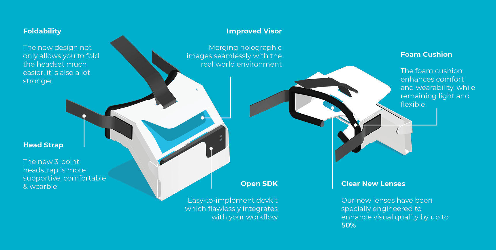 The Aryzon Kit is filled with all the key elements you need to step into a new reality. For the true 3D Augmented Reality experience, the headset is provided with: